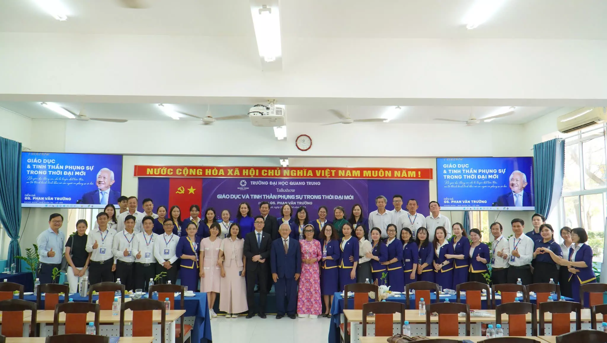 Sáng ngày 21/4/2026, Trường Đại học Quang Trung đã tổ chức thành công talkshow với chủ đề “Giáo dục & Tinh thần phụng sự trong thời đại mới”, thu hút sự tham gia đông đảo của cán bộ, giảng viên và sinh viên toàn trường. Chương trình có sự đồng hành của GS. Phan Văn Trường – doanh nhân, nhà quản trị và cố vấn Chính phủ Pháp về thương mại quốc tế, đồng thời ghi nhận sự tham gia của các doanh nghiệp thuộc hệ sinh thái Cấy nền, góp phần tạo nên một không gian kết nối thực tiễn giữa giáo dục và doanh nghiệp.